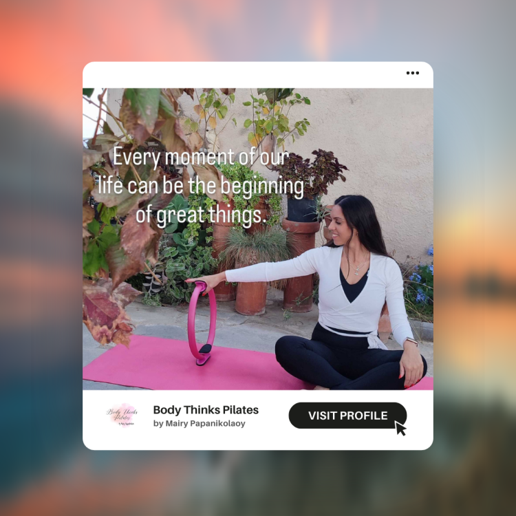 Το Pilates είναι ταξίδι κι εσύ έχεις ήδη το πιο σημαντικό: το σώμα σου. Άφησε με να σε καθοδηγήσω, βήμα-βήμα, ώστε να το γνωρίσεις, να το εμπιστευτείς και να το αγαπήσεις ξανά.